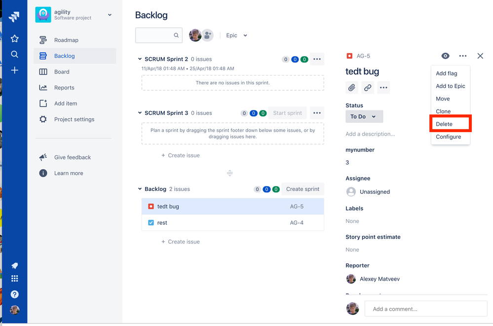 QA logs bug. The bug is deleted. Then other team members accuse the QA of missing a bug / slacking at work. This is one main reason many QA members hate the practice of deleting any ticket. They lose traceability to their work. This did not happen to me fortunately. But it did happen to a whole team of testers in India, when their tickets were deleted. They had to retest everything all over again. No, the project did not get delayed, these days the team is expected to work overtime.